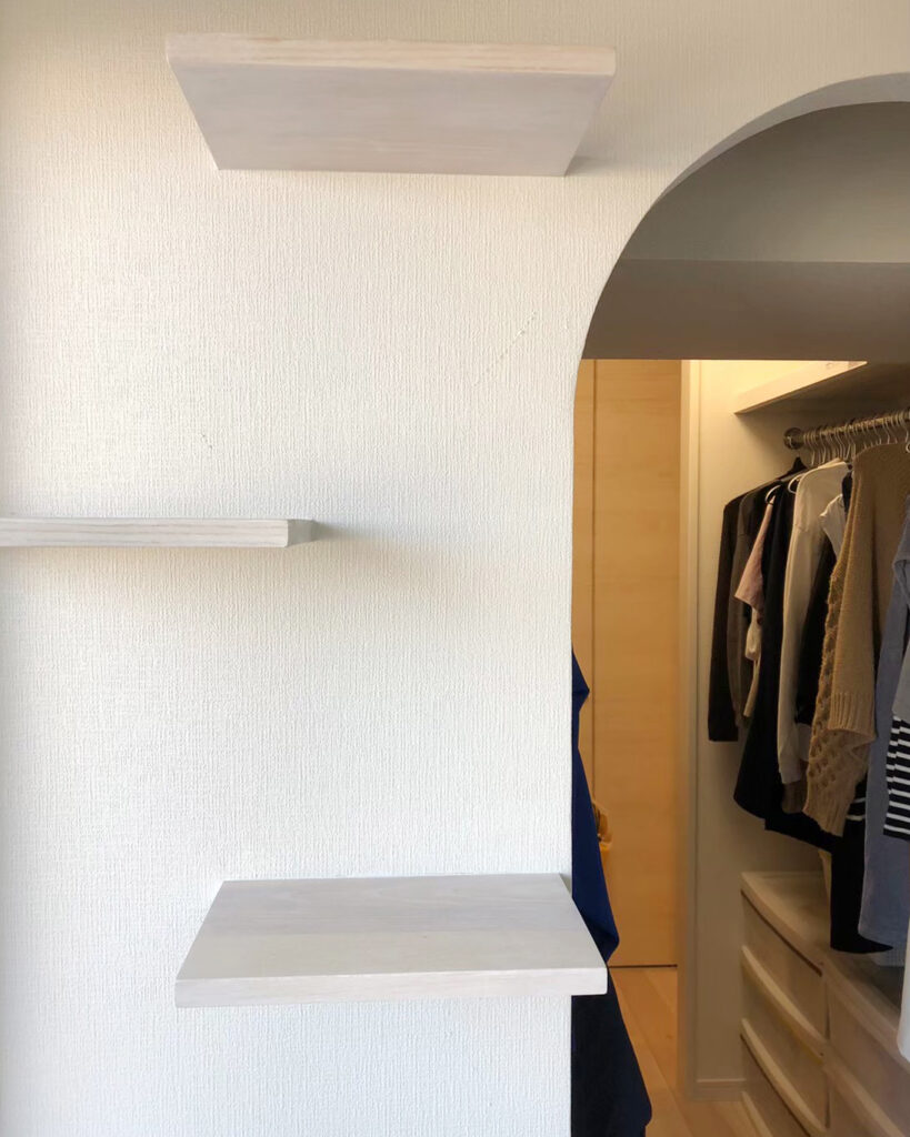 こちらは元々寝室としてお使いだった洋室。洋服の収納にも困っておられたのでウォークインクローゼットと納戸にリフォームさせていただきました。