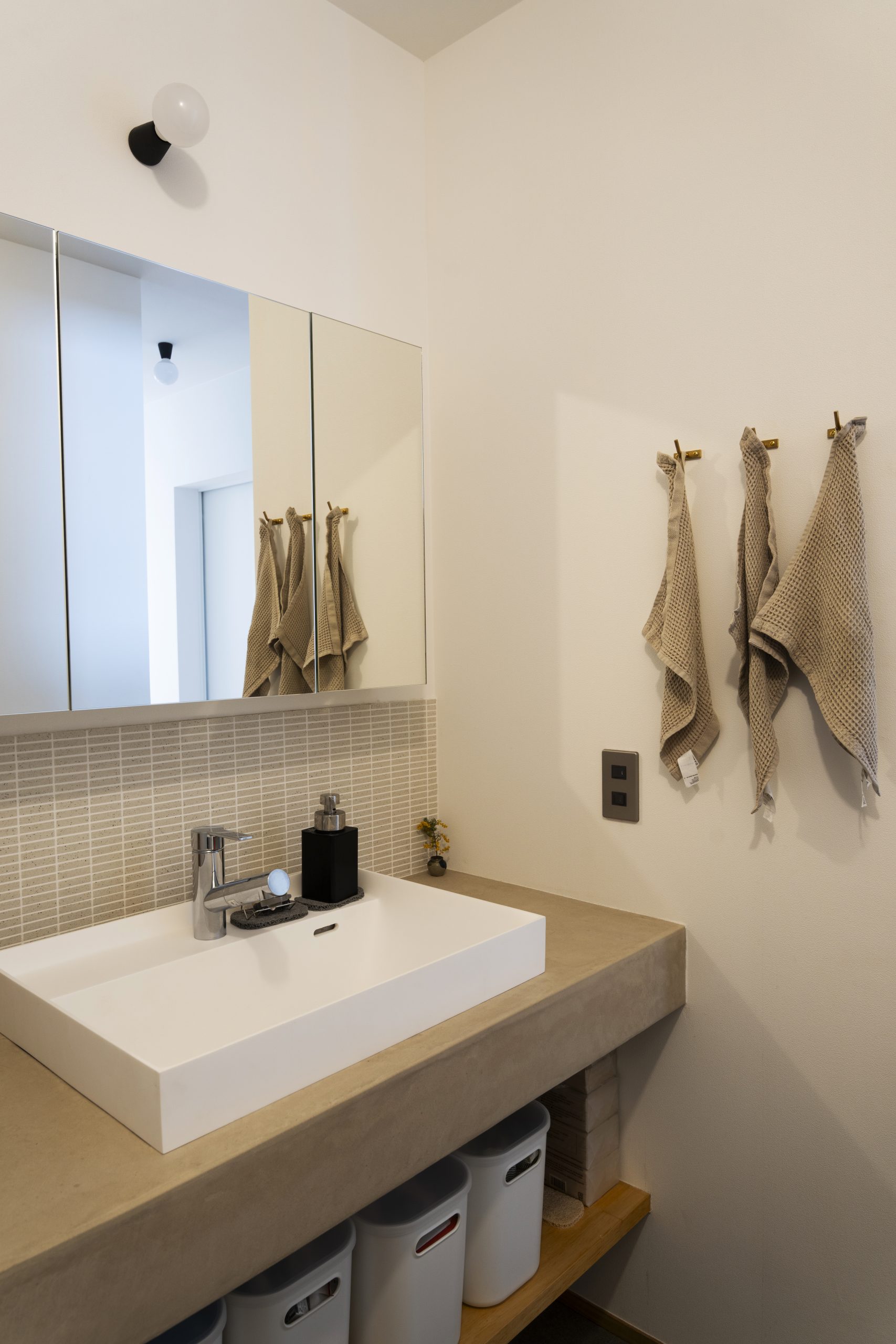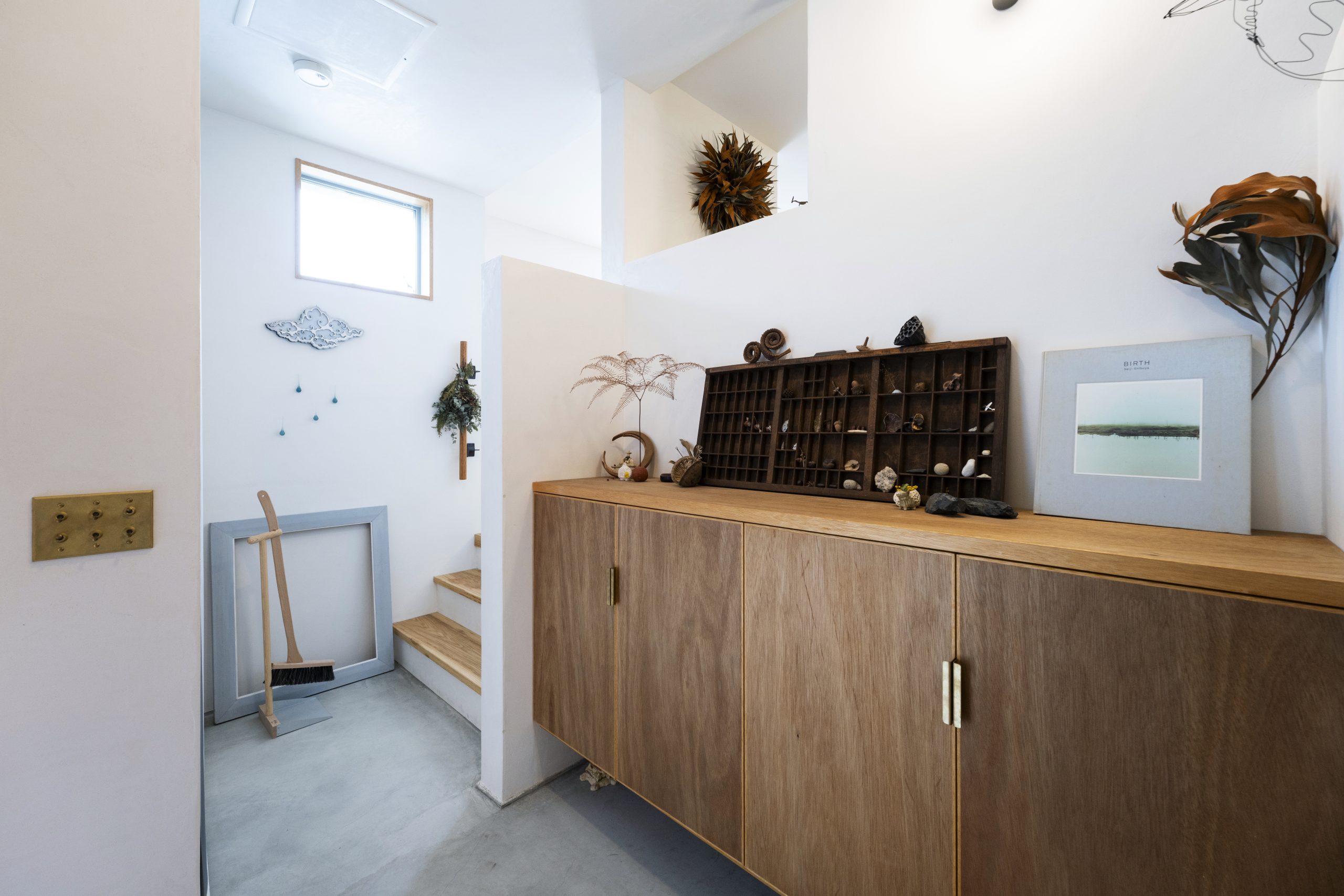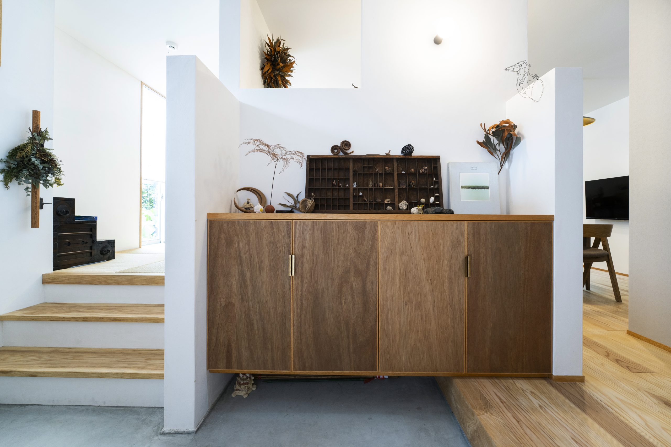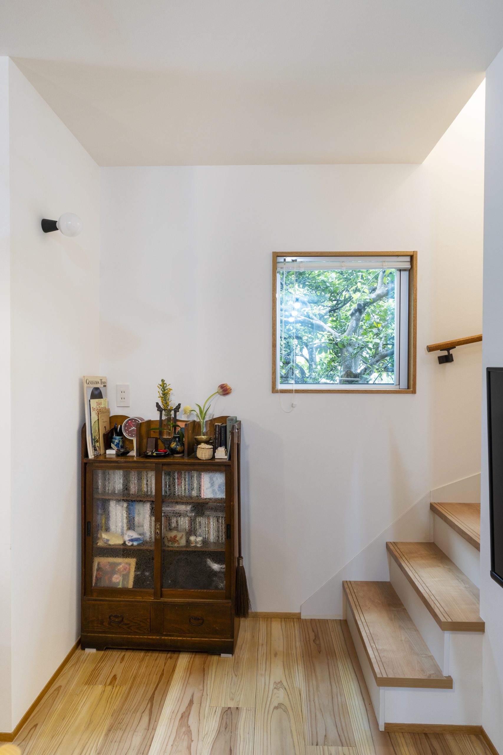 ご実家のあったこの場所には、横に大きく成長した立派なシークヮーサー木がありました。根が基礎に干渉するかもしれないと伐採する意見もありましたが、植木屋さんに相談して残すことができ、ダイニングの窓から見えるように計画しました。