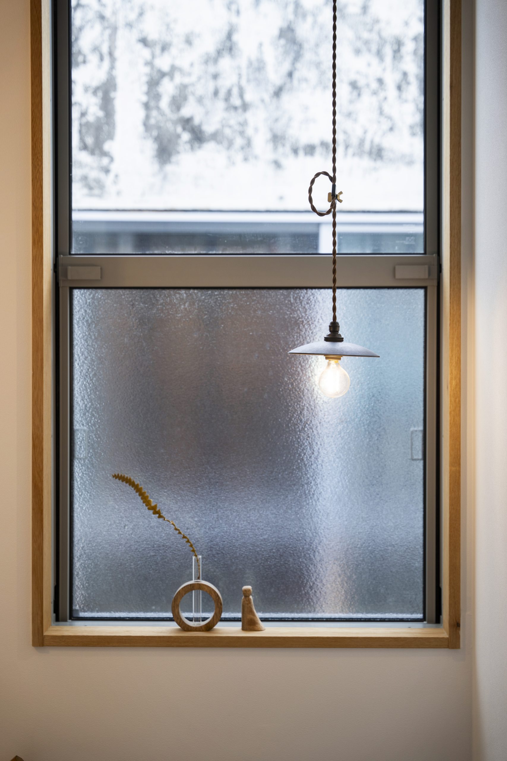 四方を住宅に囲まれた土地ですが、リビングの地窓から春の芽吹きを