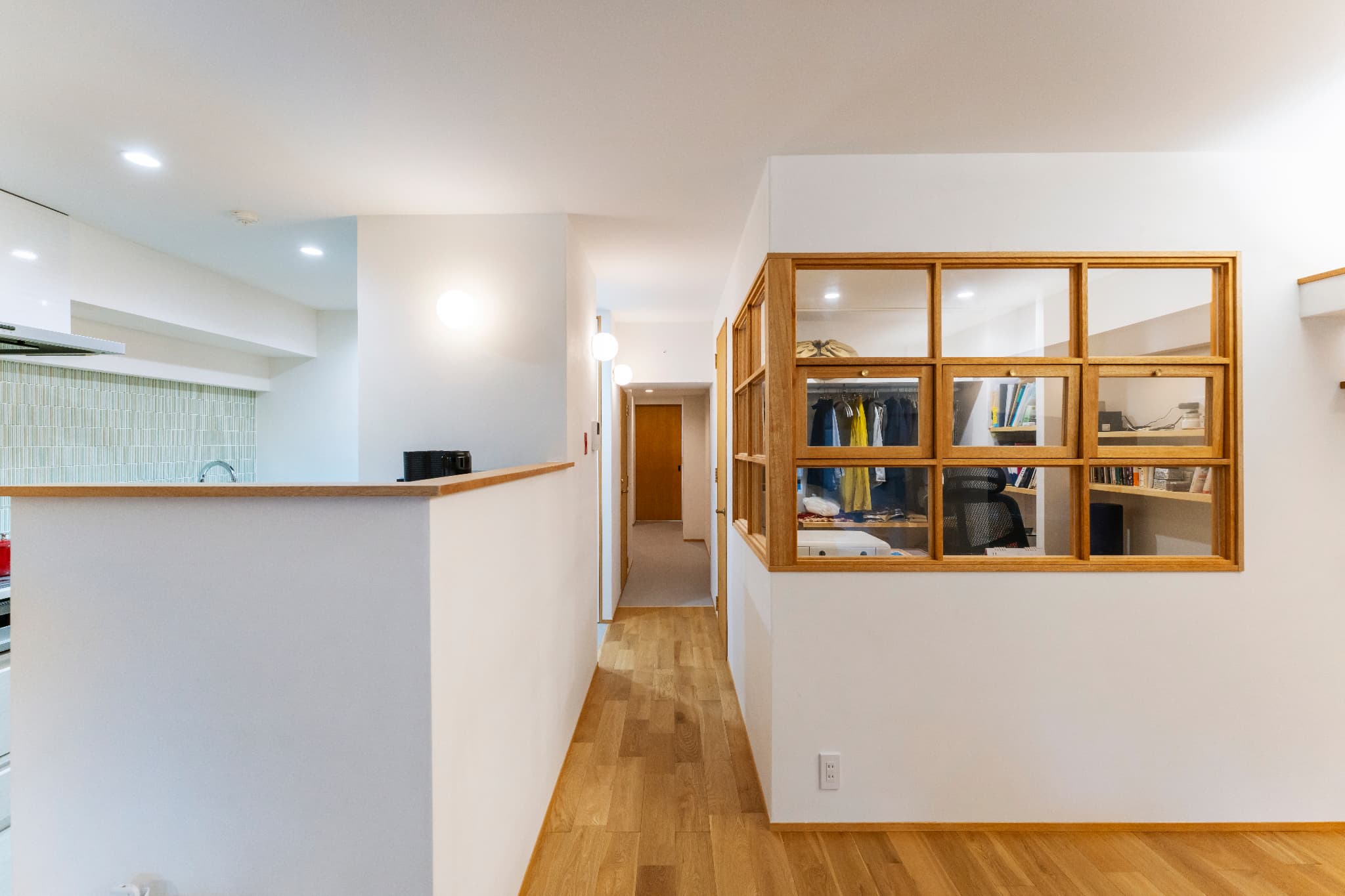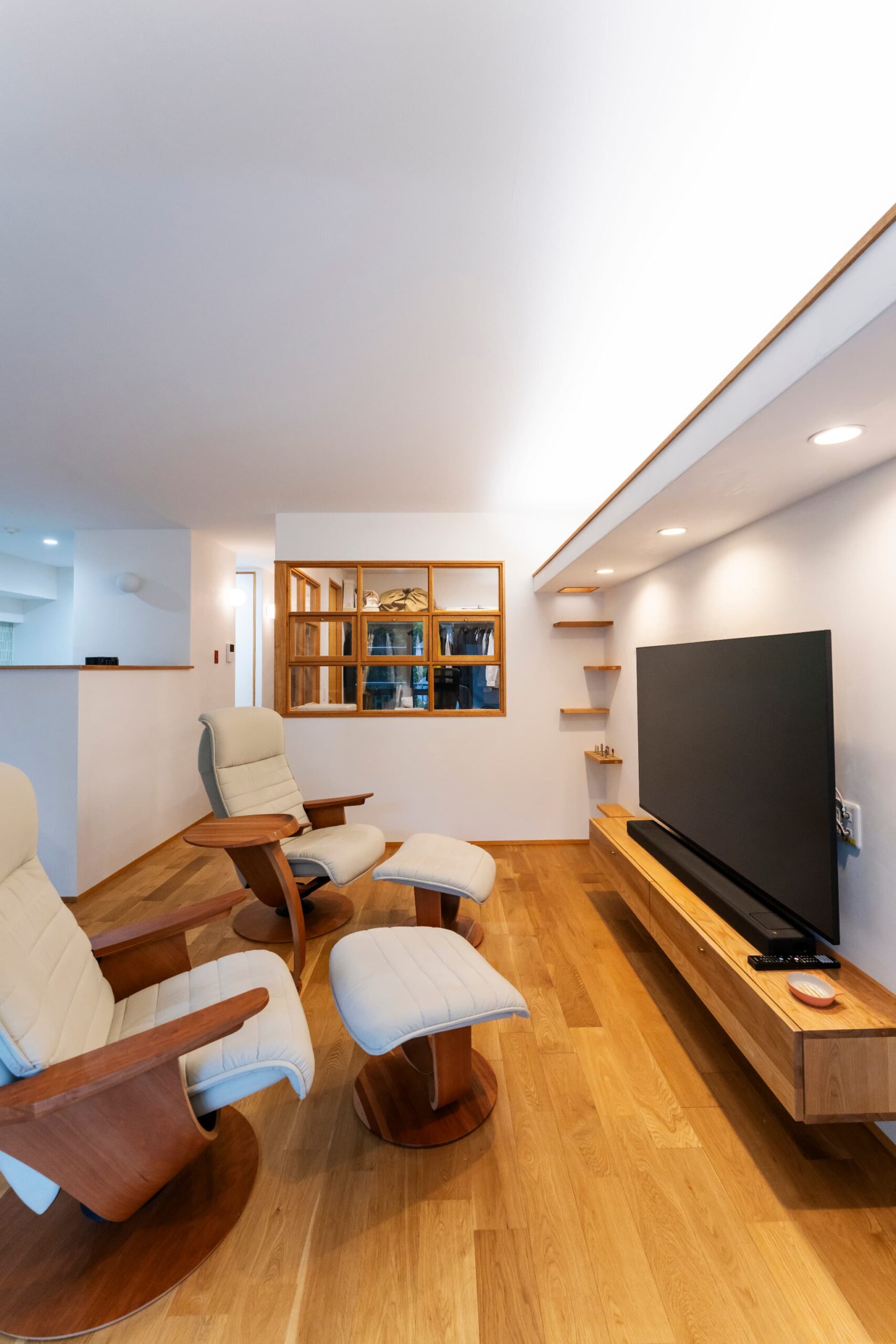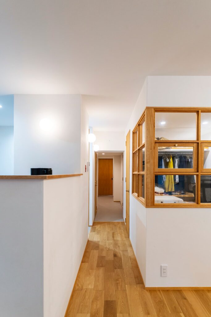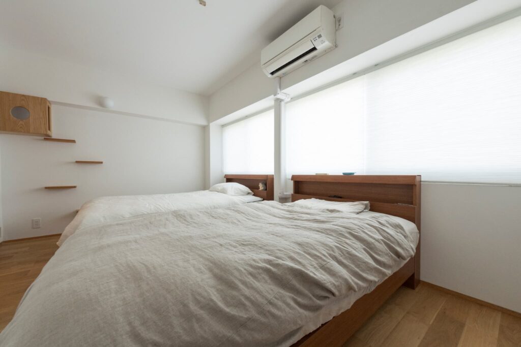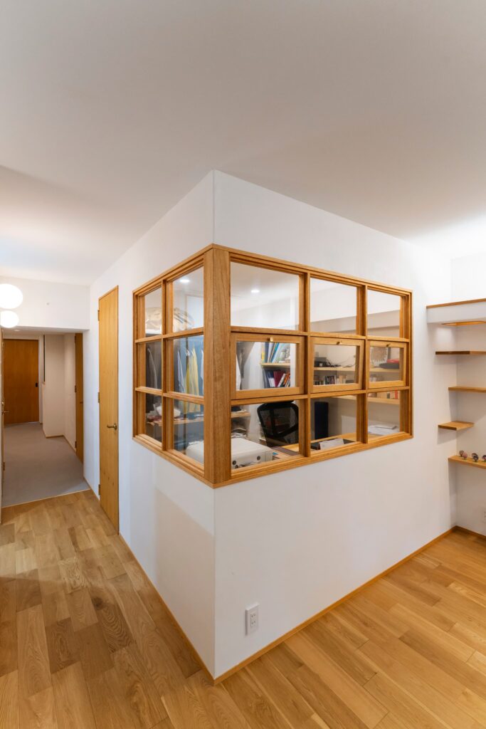 お部屋を狭く感じないギリギリまで、床下空間を作って壁をふかして。窓ガラスはシングルからペアガラスに。サッシごと交換したかったけれどそれは管理組合からNGが。。
