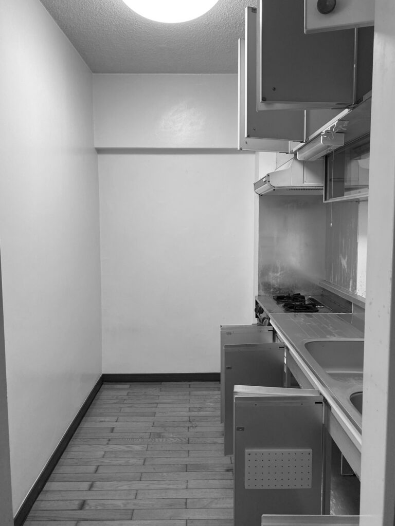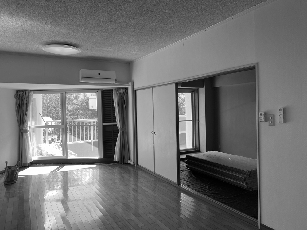 古い物件にはよくあるのですが、こちらのお部屋も壁も床も躯体に直貼り。これだと床や壁から外気が伝わりやすく、夏は暑くて冬寒い室内になってしまいます。